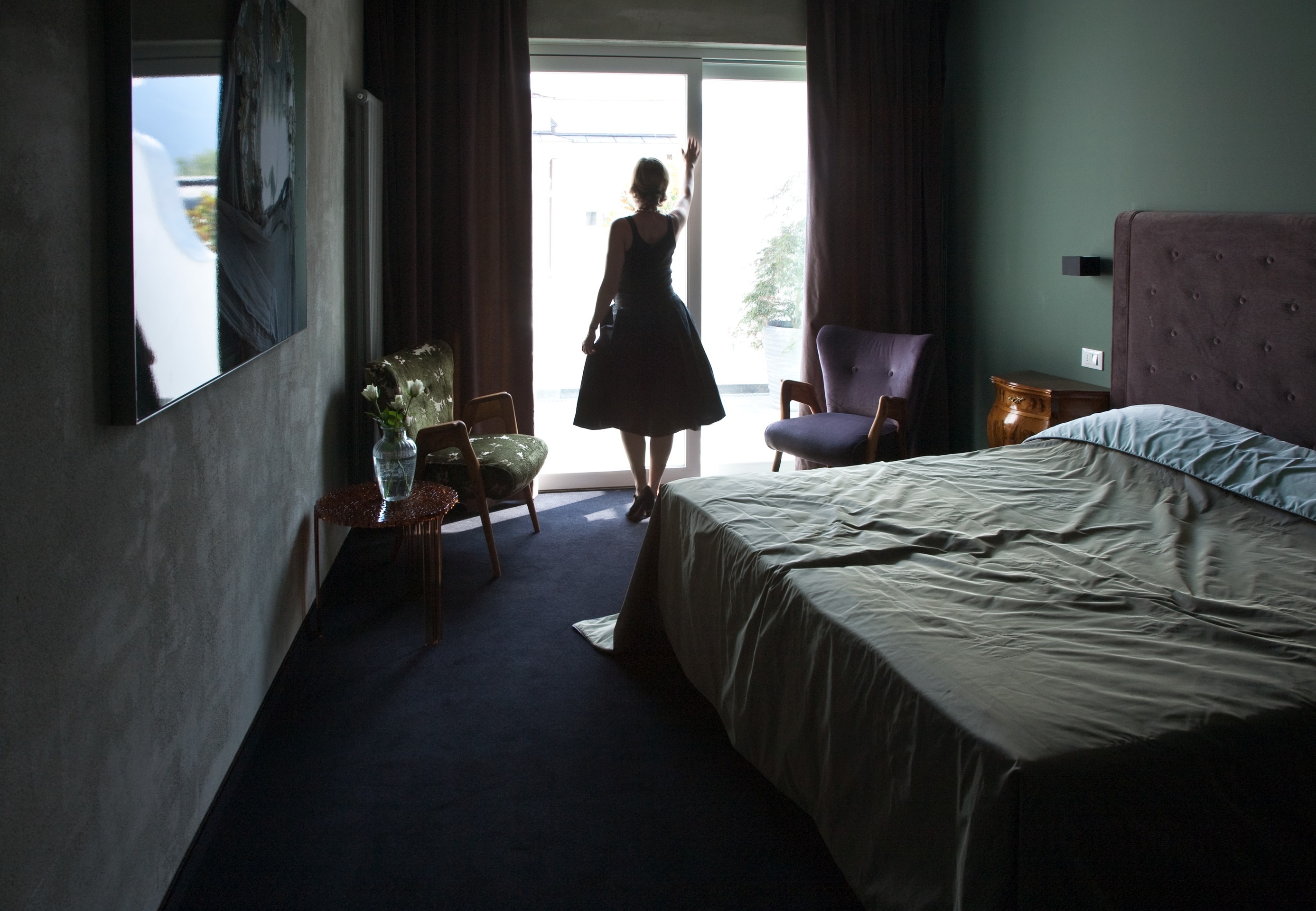 der raum der künstlerin elisabeth hölzl ist eine hommage an das traditionsreiche meraner "grand hotel bristol" - eine einstige kurstadt-institution, die es heute leider nicht mehr gibt. zu schön ist die erinnerung daran: prunkvoll restaurierte original-möbel, eine nostalgische farbpalette und schwere samtvorhänge. welcome back bristol!