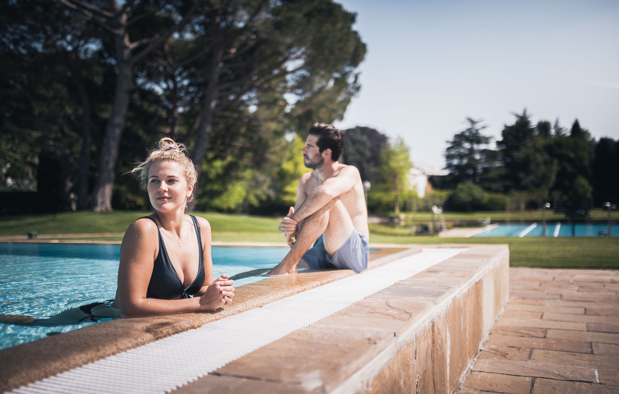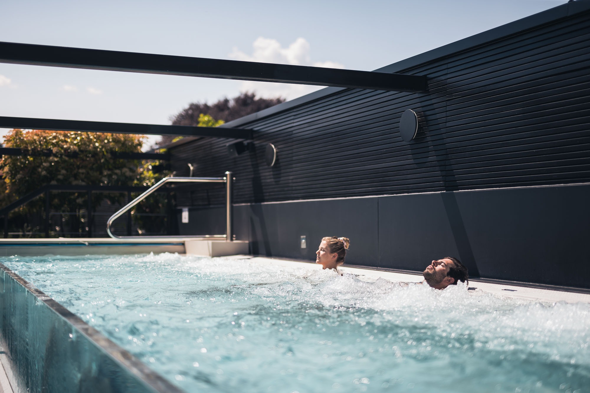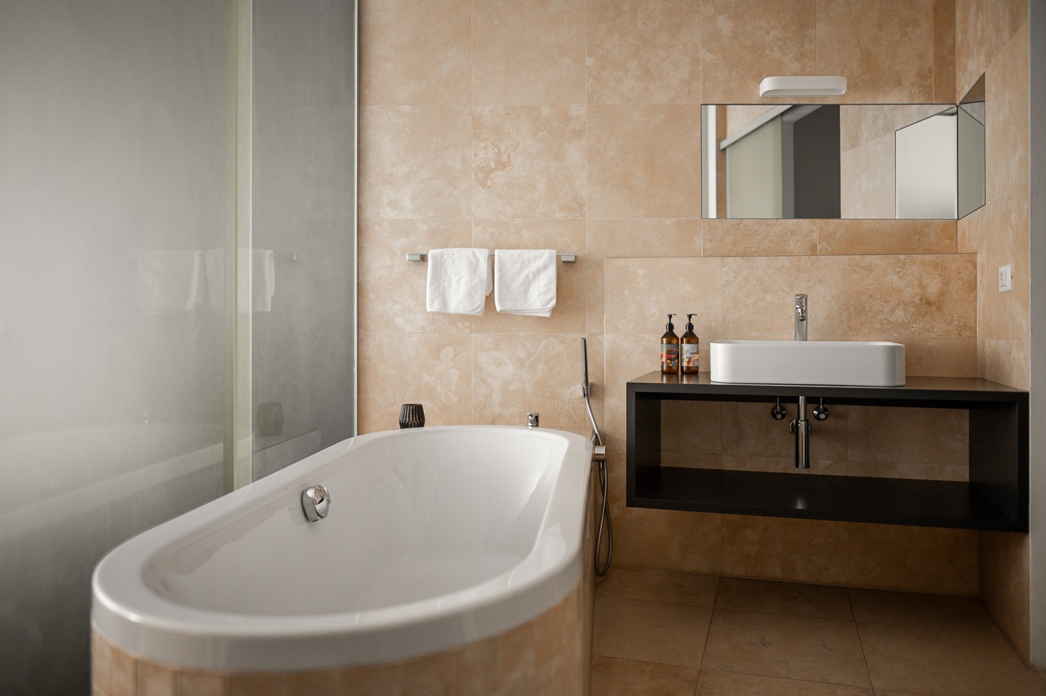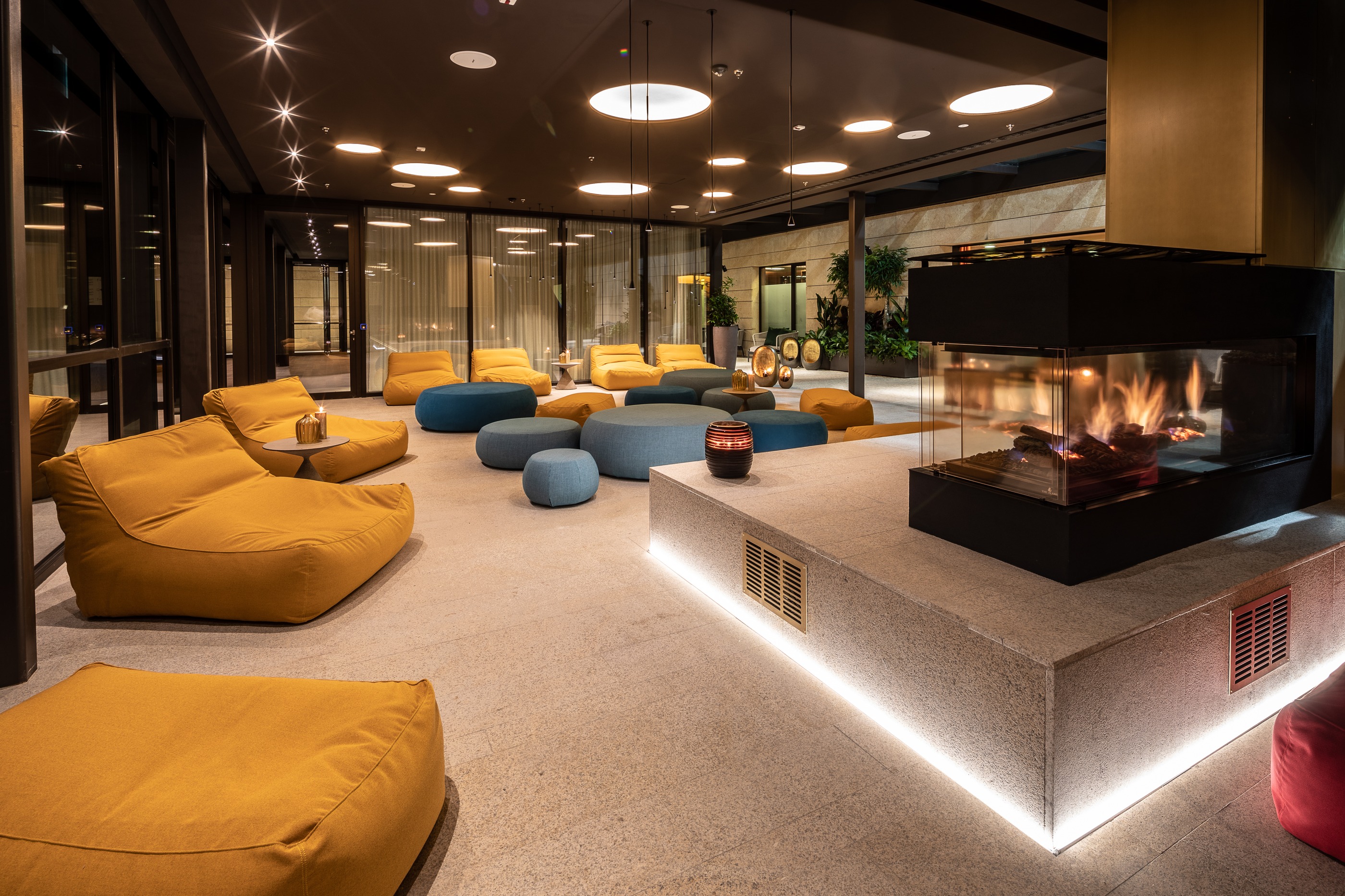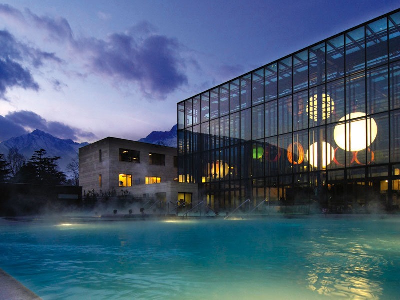künstlerin elisabeth hölzl schafft mit diesem zimmer ein völlig neues raumkonzept. die luster tapete, die zarten wie pastelligen farben, die zeitgleich nostalgisch wie modernen möbel, die freistehende badewanne, der whirlpool auf der terrasse: therme wird zum zeitlosen raumgefühl. und wo passt das besser als in der kurstadt meran? genau, nirgendwo.